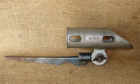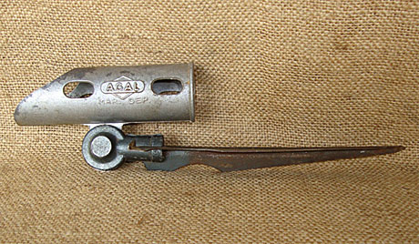 - Aggiunto una foto di diverso appoggia-canna modello “Ercole”, con particolare terminale a punta in lamiera stampata che comprende una sporgenza laterale, per consentire alla punta della scarpa di esercitare la pressione necessaria a penetrare il terreno. Anche questo articolo è marcato B14027. .
