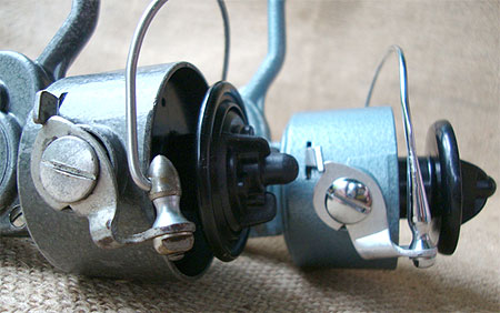 La seguente è di colore celeste martellato, ha gli elementi citati nel precedente, tutti di seconda generazione, compresa la bobina in bakelite leggera, ed il coperchio della cassa il alluminio stampato, con la nicchia porta-medaglietta.