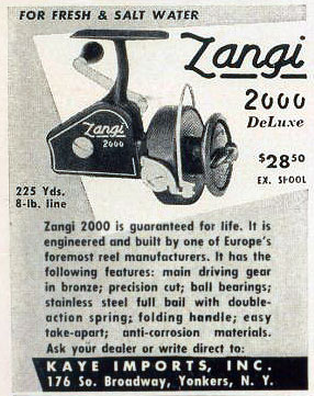 Ecco una rara pubblicità tratta da una vecchia rivista di pesca del 1955 - USA. La particolarità è nel fatto che l'immagine riporta uno "Zangi 2000" con la dicitura " DeLuxe"!