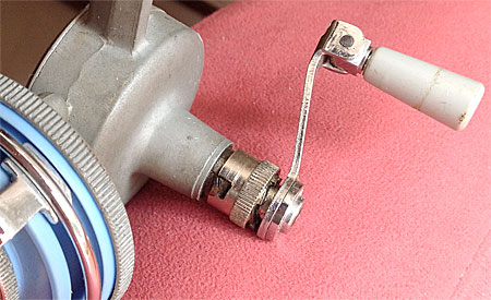 L'antiritorno è azionato da una ghiera in parte godronata e posta sull'asse della manovella.